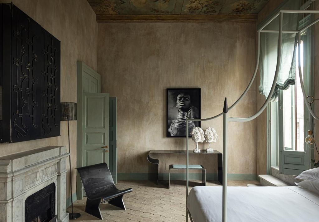 Elle Dimora di Sicilia, nichée au troisième étage d’un immeuble de la Piazza Stesicoro, se trouve juste au-dessus d’un amphithéâtre romain du IIe siècle. Contrairement à un hôtel classique, elle propose trois suites au design unique, chacune alliant une touche théâtrale à des détails raffinés : murs couleur charbon, linge de maison égyptien, silhouettes de soldats romains peintes à la main et douches indépendantes remarquables qui invitent à la conversation.