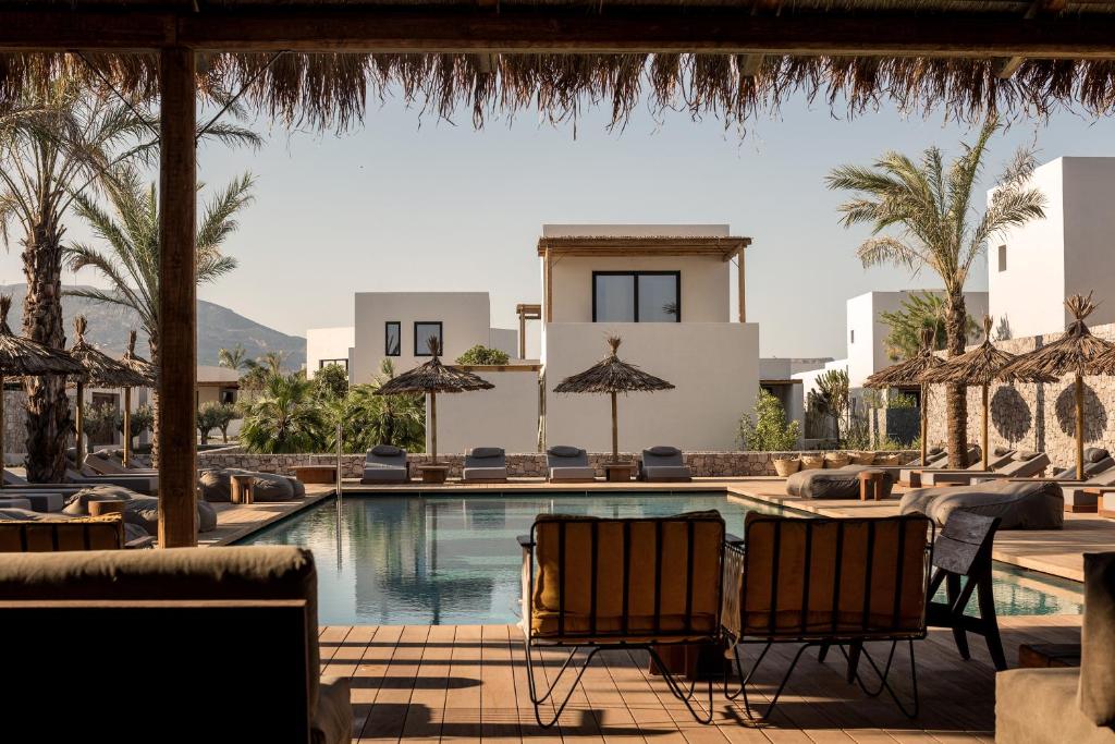 À l'intérieur, il allie le confort moderne au style Art déco. Avec seulement huit chambres, il offre une atmosphère à la fois exclusive et chaleureuse. Les clients profitent d'une vue imprenable sur la mer Égée depuis les chambres et les suites, ainsi que d'un club de plage en bord de mer.