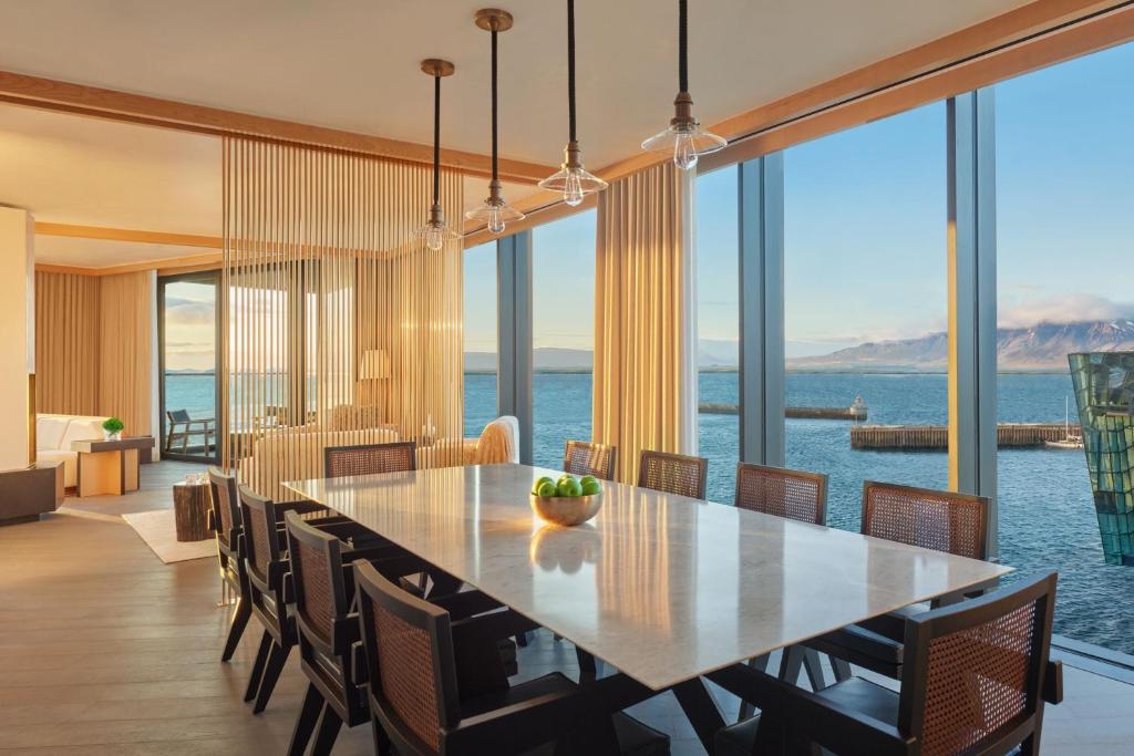 Conçu par Roman and Williams, il réinterprète le style moderne du milieu du siècle avec des touches nordiques telles que le bois blond et l'artisanat local. Ses espaces dégagent une atmosphère cosmopolite avec de subtiles influences islandaises, tandis que Tides, son restaurant étoilé au guide Michelin, met en valeur la cuisine locale. Deux bars élégants offrent des lieux animés où les clients et les habitants peuvent se rencontrer.